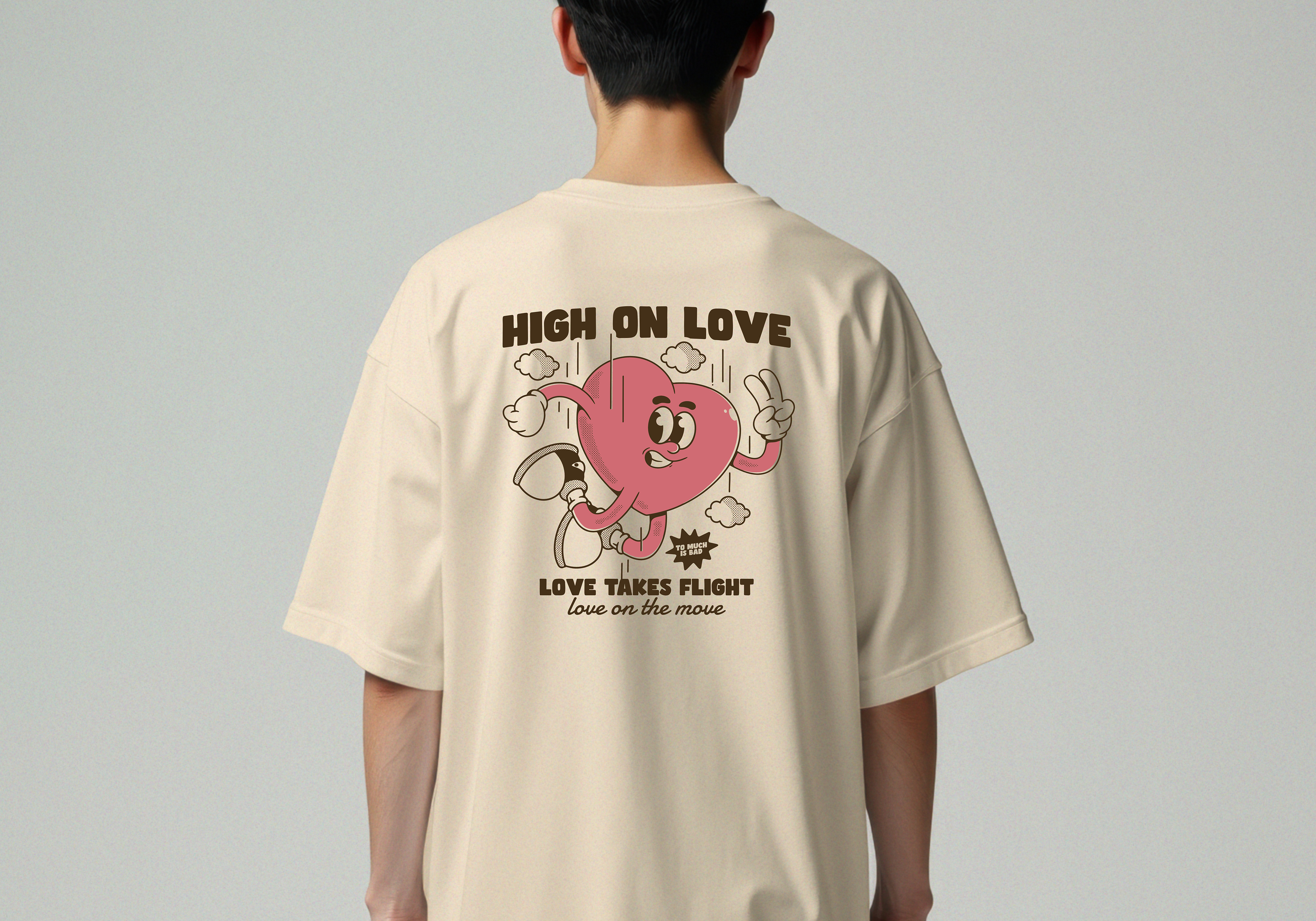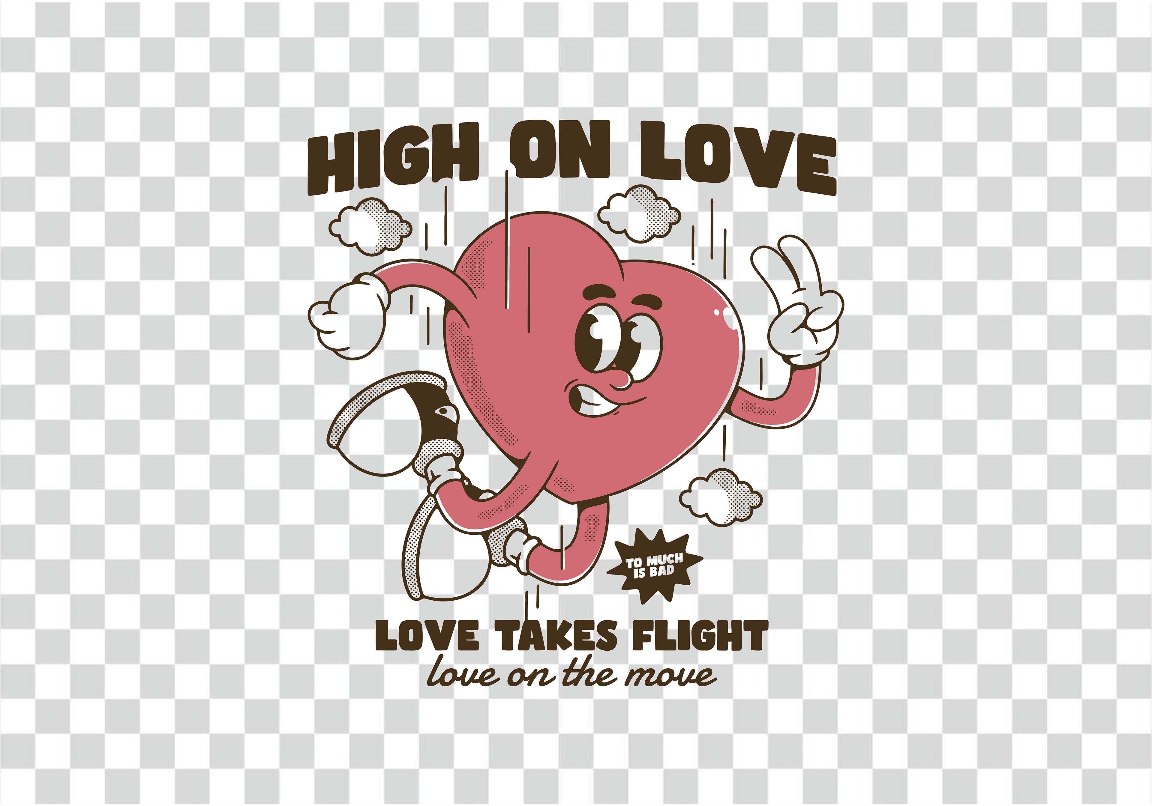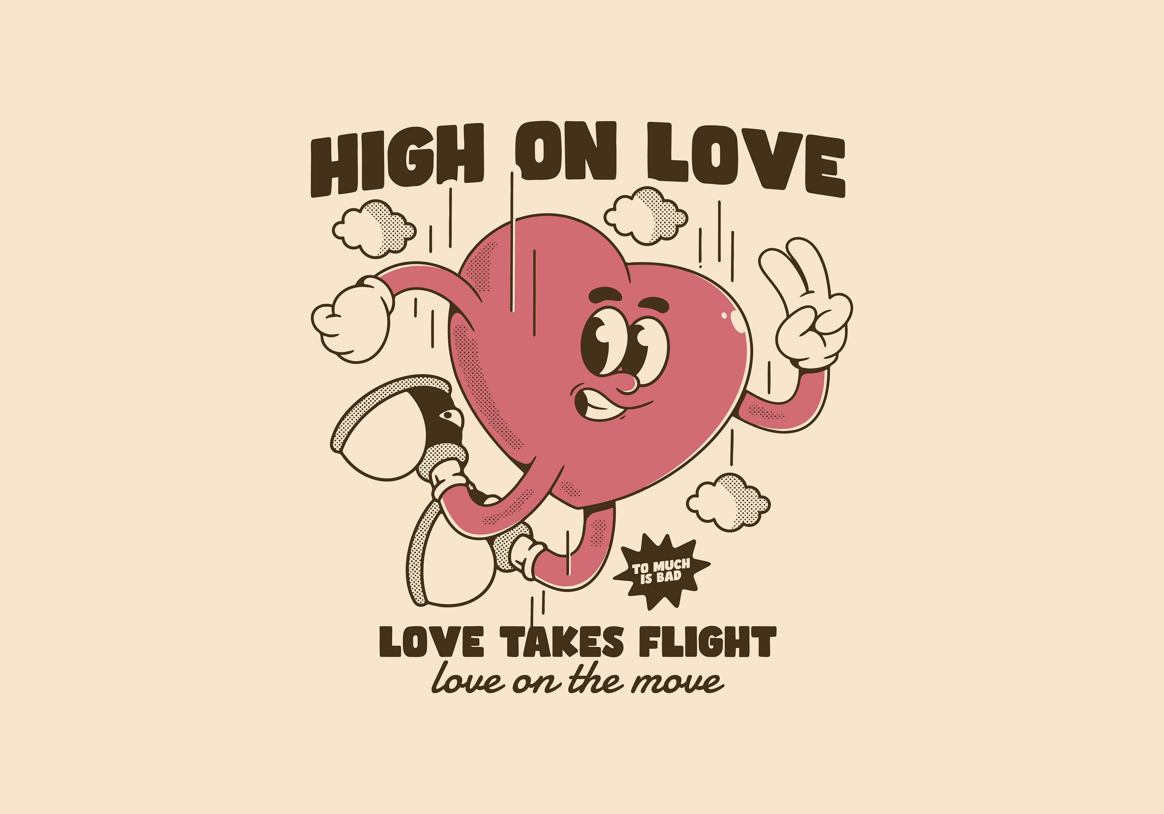 A retro reminder that love lifts us up — but hey, too much is bad 😄☁️