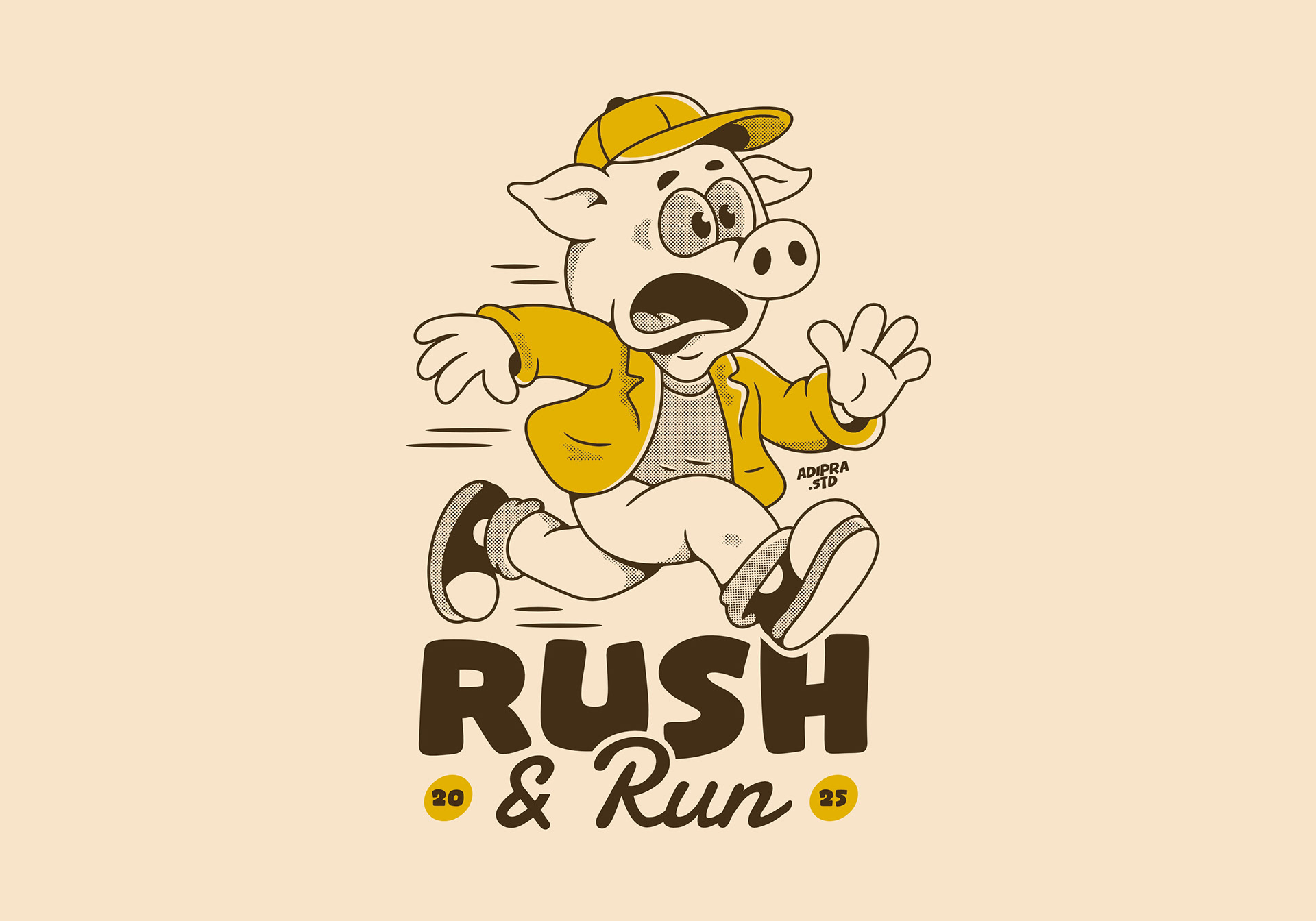 #adipra #adiprastd #adiprastudio #adpr #rushandrun #cartoonpig #funnycharacter #retroillustration #vintagestyle #cartoonart #animaldesign #streetwearart #tshirtdesign #graphictee #playfulart #comicstyle #funillustration #characterdesign #creativeart #humorart #cuteart #retroartwork #illustrationdaily #merchdesign #artforclothing #expressiveart #boldillustration #artlovers #indieartist