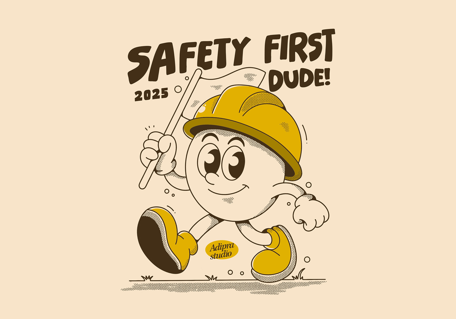 Stay safe and keep the good vibes running! 👷‍♂️✨ This cheerful safety mascot reminds us that protection always comes first — no matter where the journey leads. Safety never goes out of style!